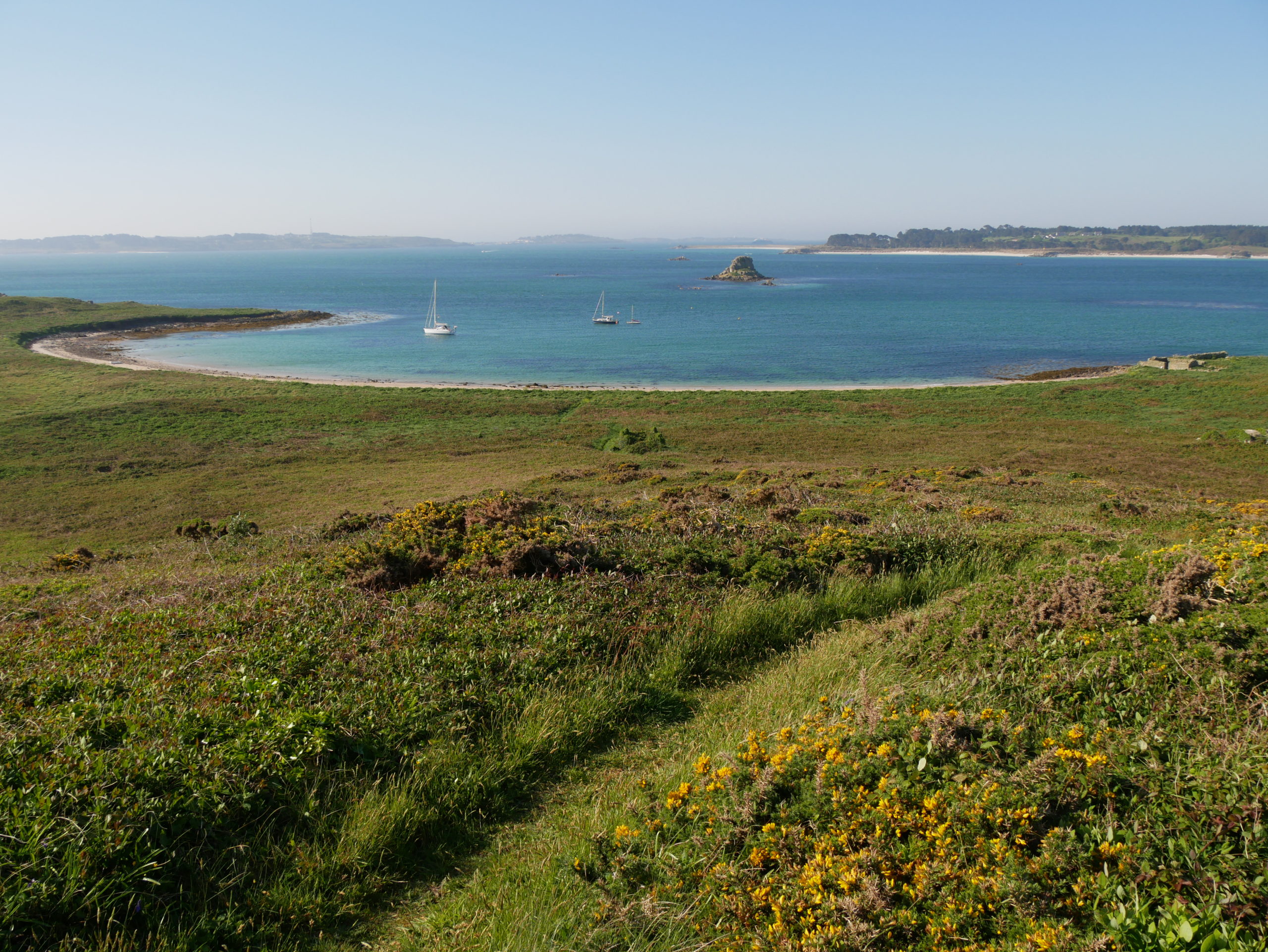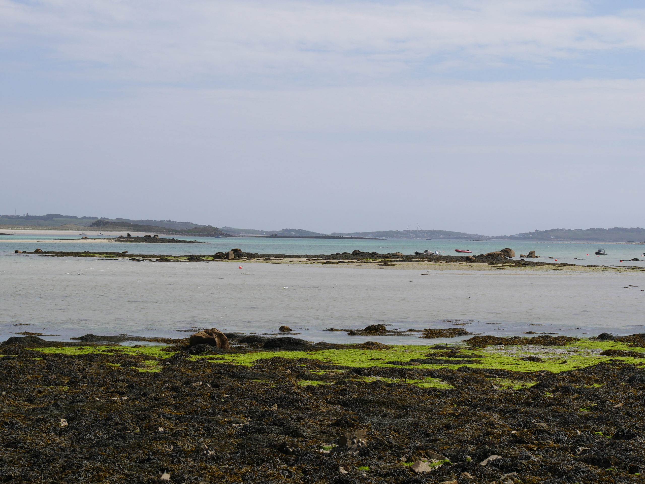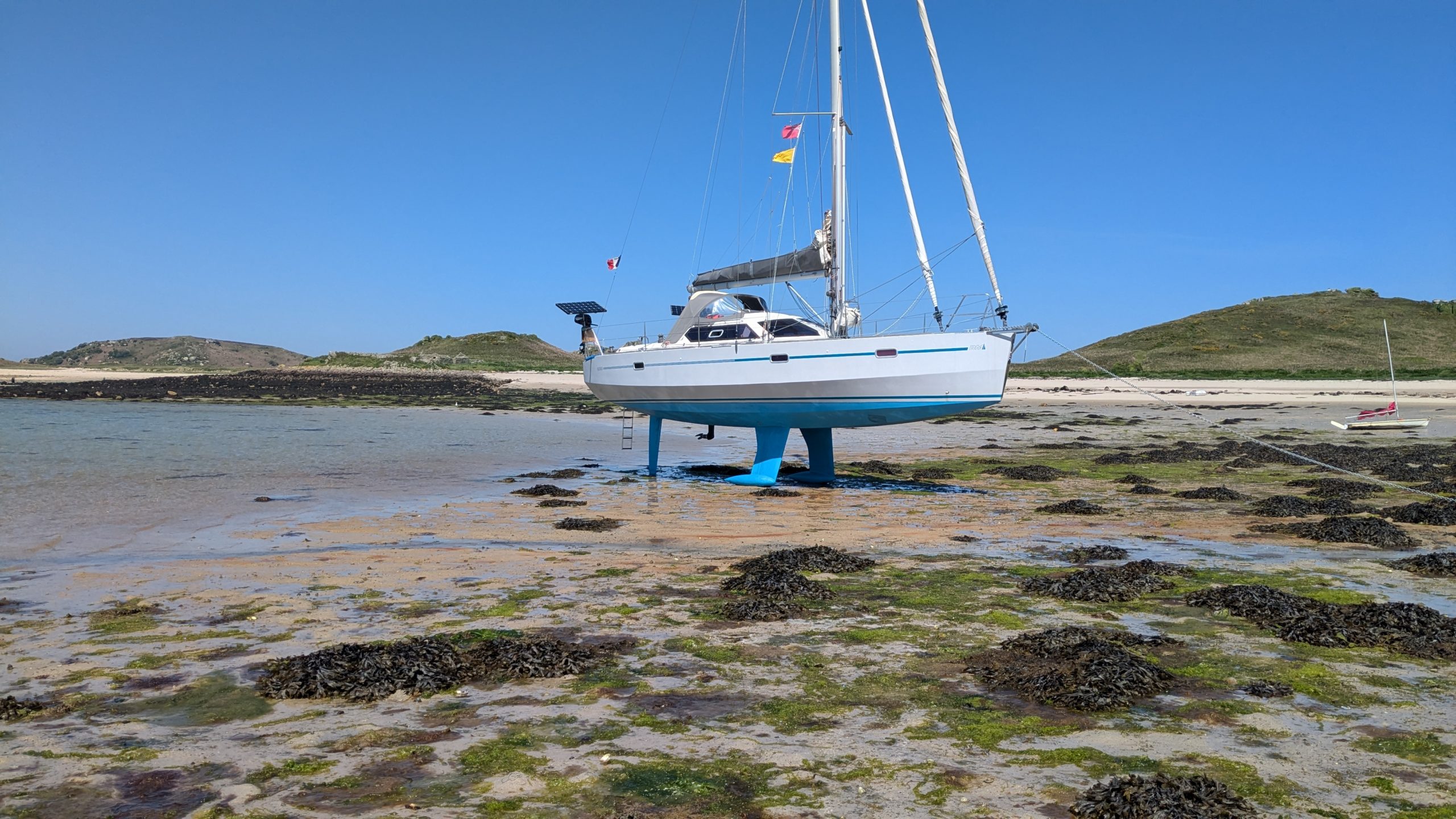 Second échouage : Green Bay sur l’île de Bryher.  Ce mouillage est parfait pour tous les vents du SW au N. Mais il est aussi praticable par vent assez fort de NE voir E. Dans ce cas il faut mouiller le plus au fond possible dans le coin NW de la baie. Bryher vous protège. A pleine mer il y a du clapot. Mais la aussi au moment de l’échouage c’est parfait (nous ne sentirons pas les échouages / deséchouages). Vent assez fort de ENE.